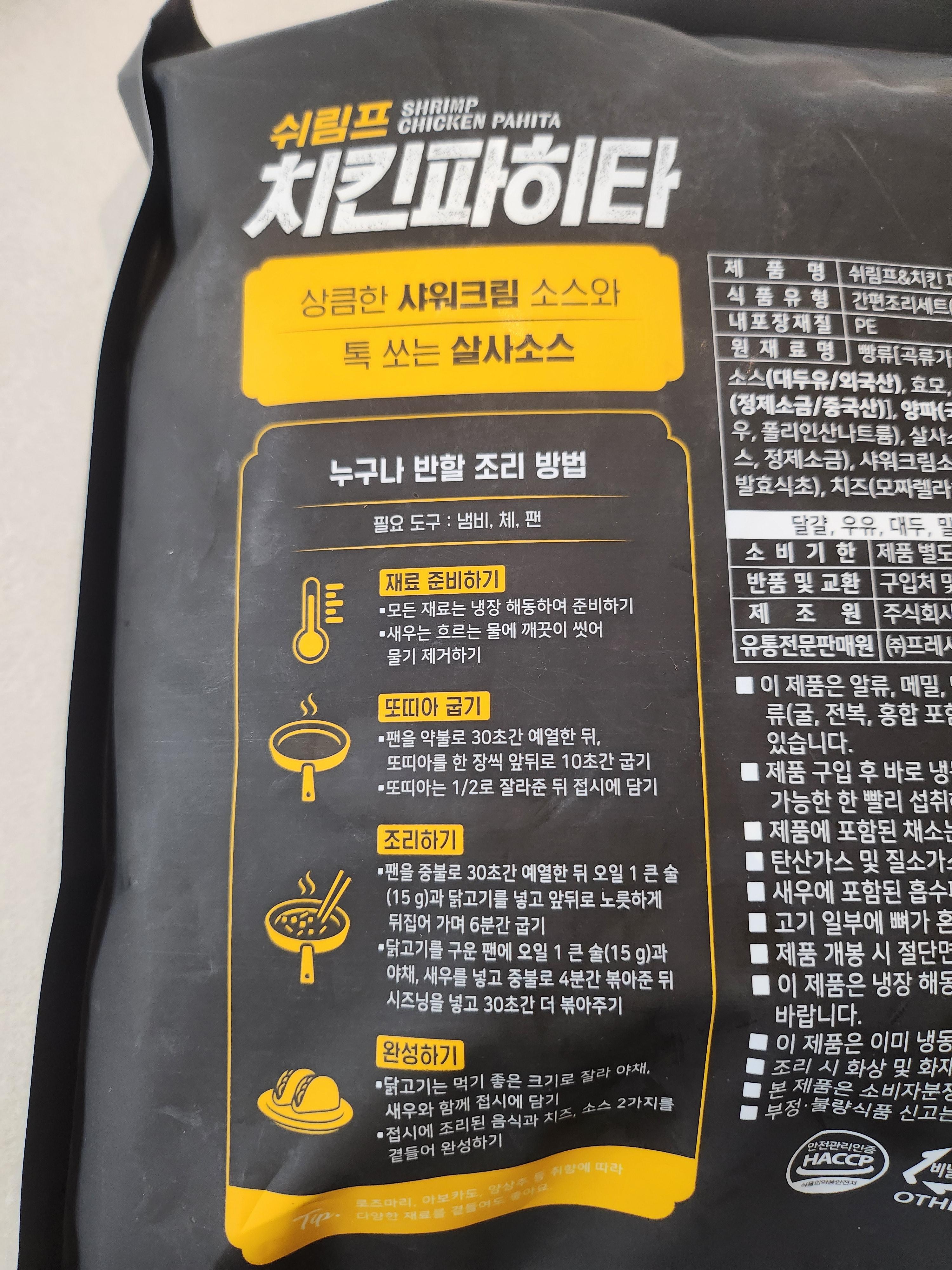 | 제품명 | [누구나홀딱반한닭] 쉬림프 치킨파히타 (프레시지) |