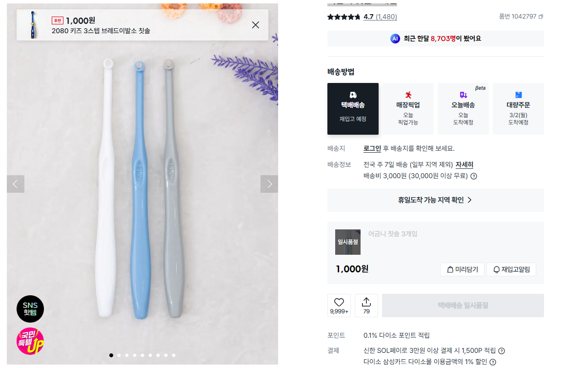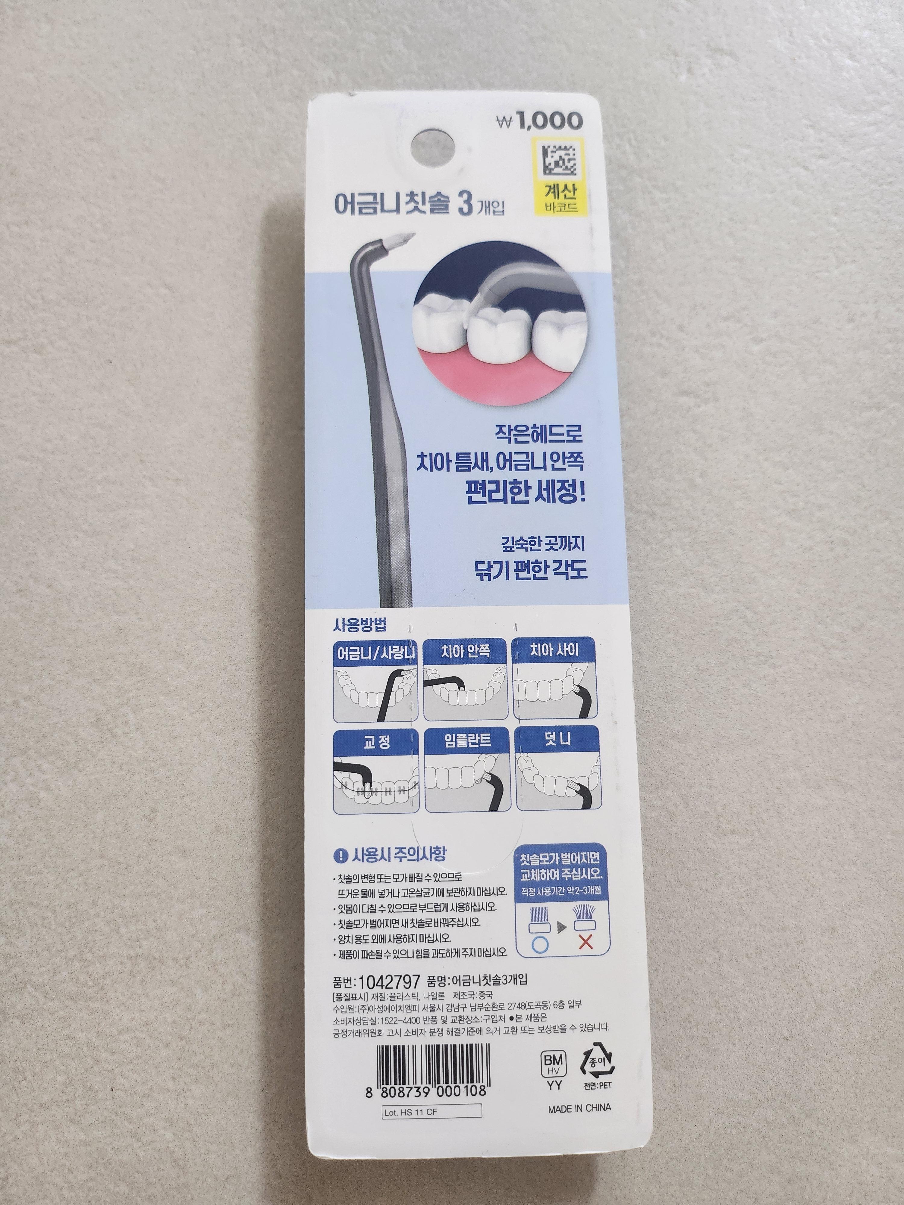 | 어금니 칫솔 | 1042797 | 1,000원 (3개입) | ⭐⭐⭐⭐⭐ |