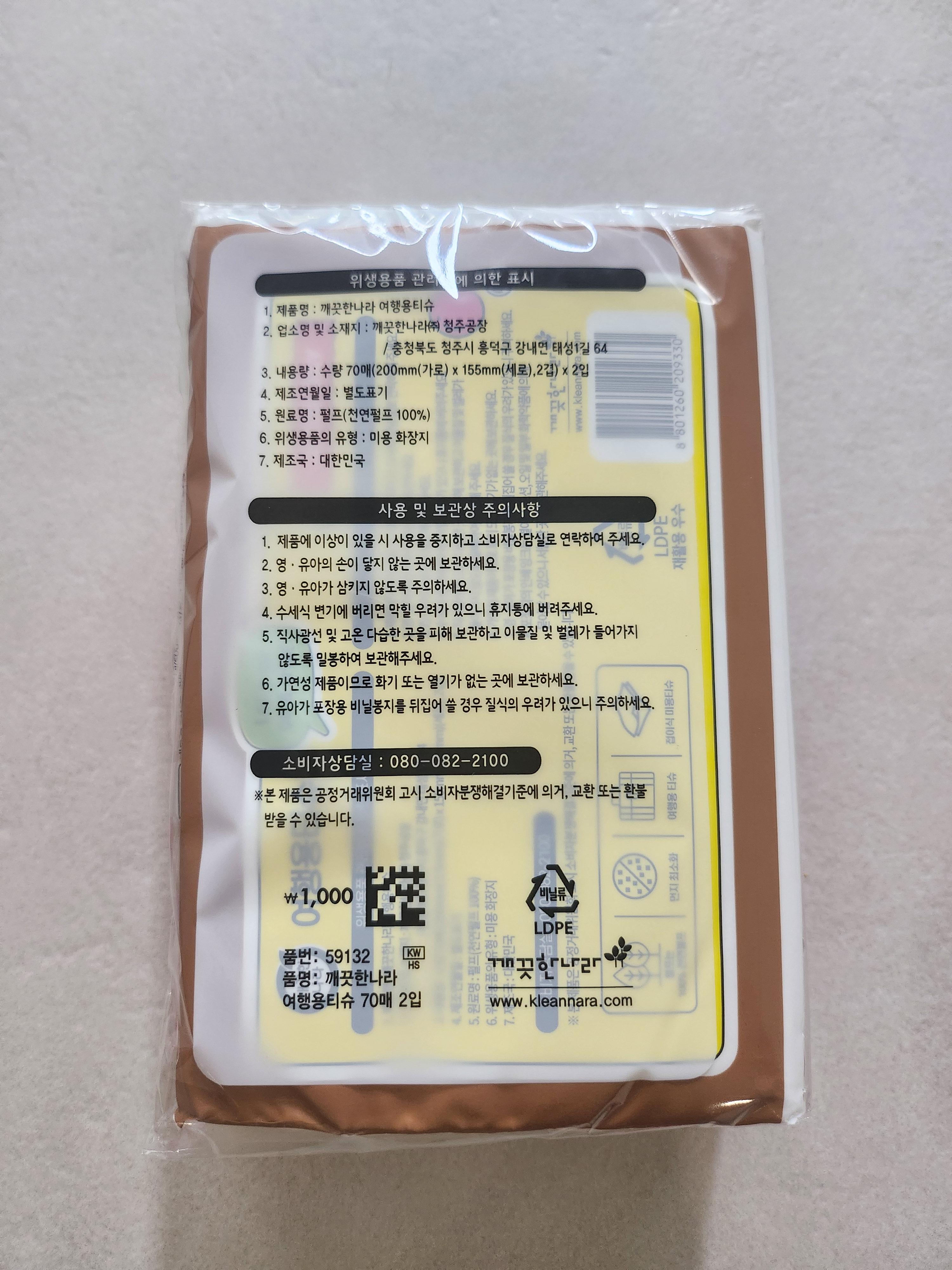 | 제품명 | 깨끗한나라 여행용 티슈 70매 (2개입) |