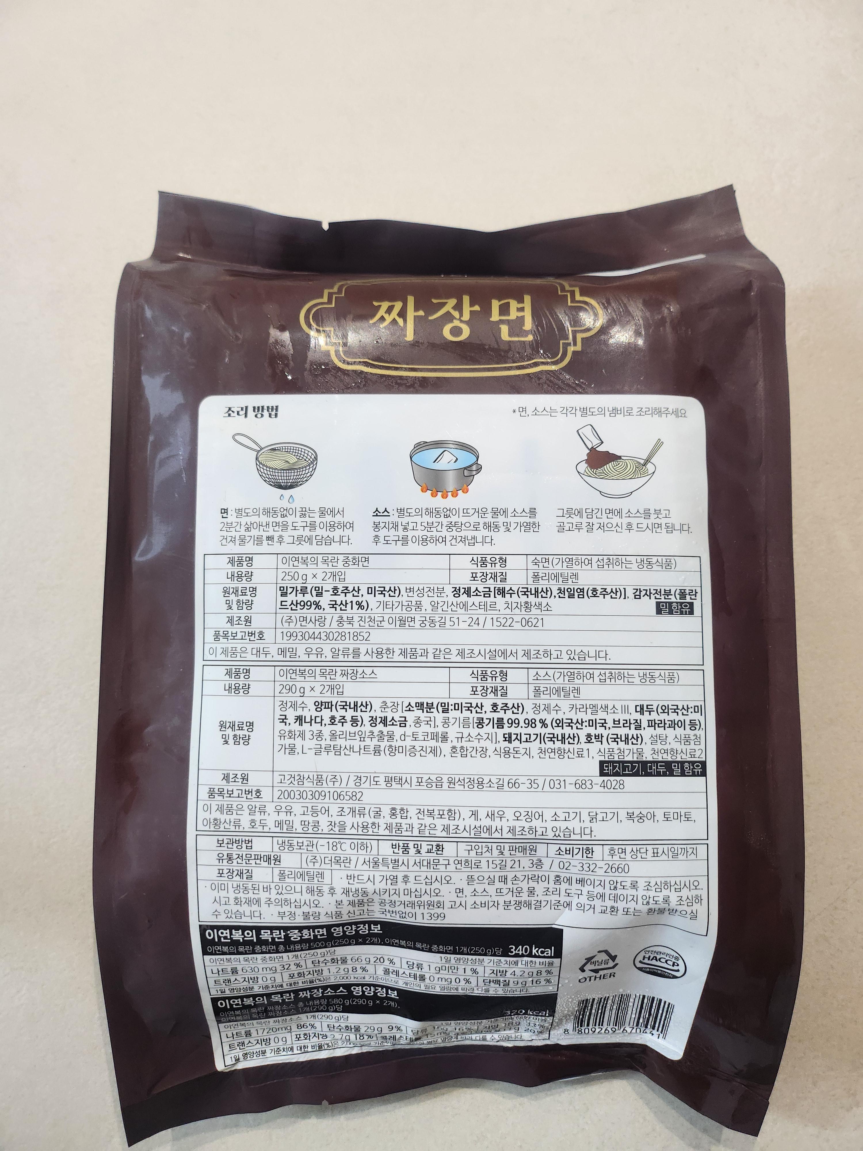 | 제품명 | 이연복의 목란 짜장면 (2인분) |