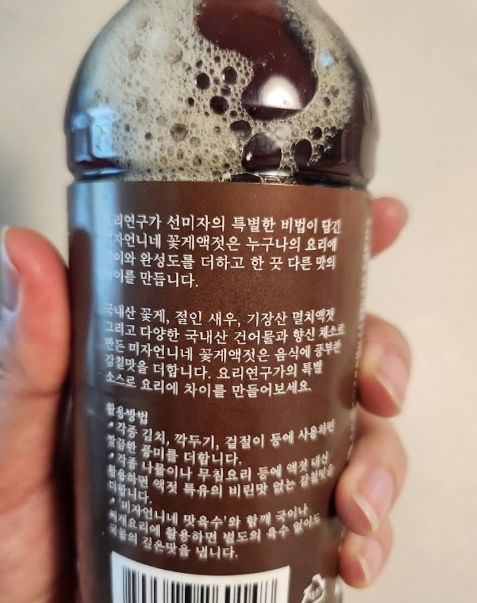 뚜껑을 열고 향을 맡아봤는데, 확실히 쿰쿰한 젓갈 냄새가 적어요. 멸치액젓 베이스지만 다시마, 양파, 생강 같은 향신 채소가 들어가서 그런지 달큰하고 맛있는 냄새가 먼저 올라옵니다. 액젓 초보자도 "어? 괜찮은데?" 할 수 있는 향이에요. 😎